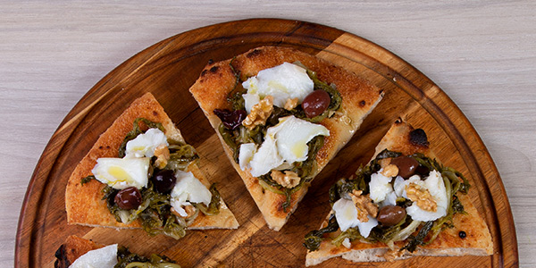 Vellutata di Friarielli, Salsiccia, Mozzarella misto Bufala, 'Nduja di Spilinga, Filamenti di Peperoncino, Olio Evo