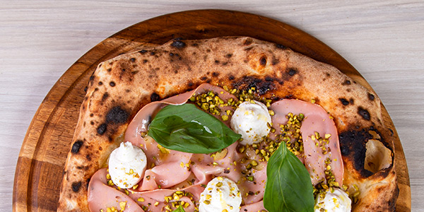 Fior di Latte misto Bufala, in uscita Mortadella IGP al Pistacchio, Fiori di Ricotta di Bufala e Granella di Pistacchio di Bronte, Olio Evo
